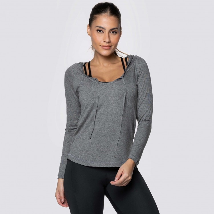 Blusa Manga Longa e Capuz Fitness Branca