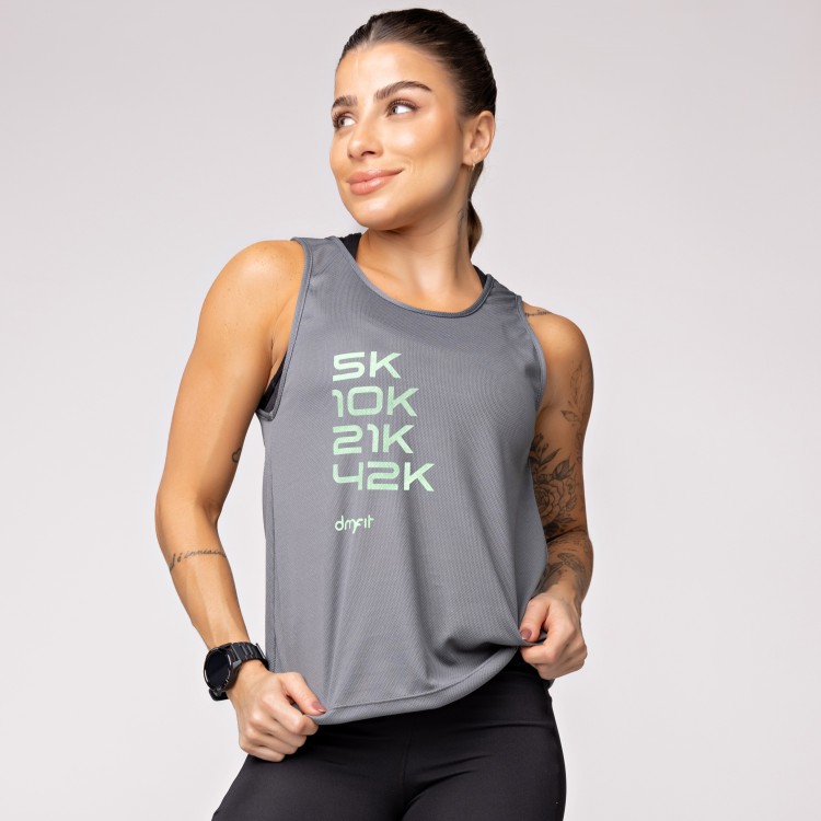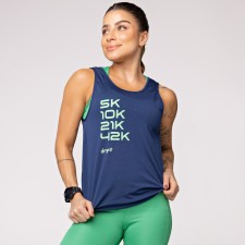 Regata Dry Furadinho Azul com Detalhe nas Costas e Estampa Run