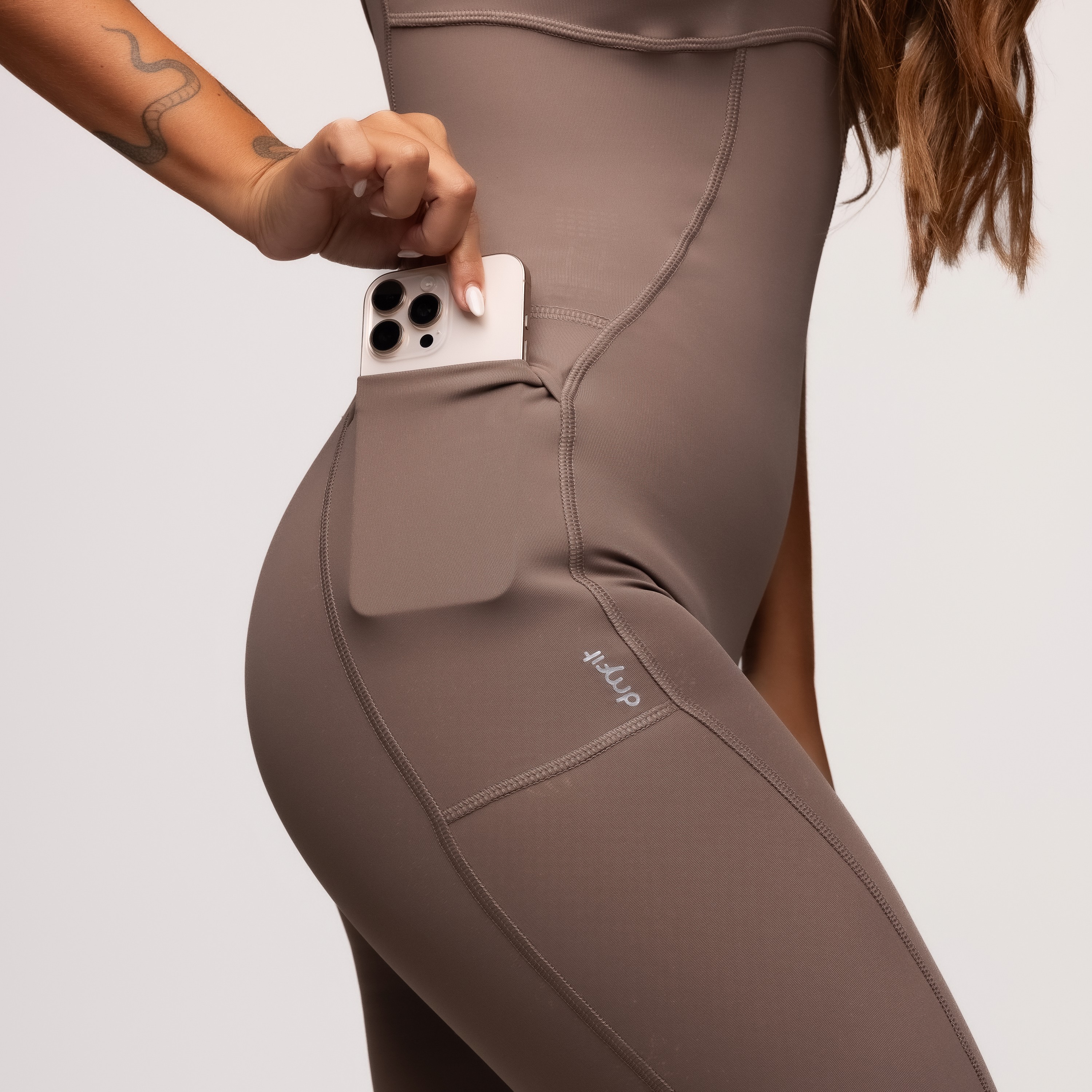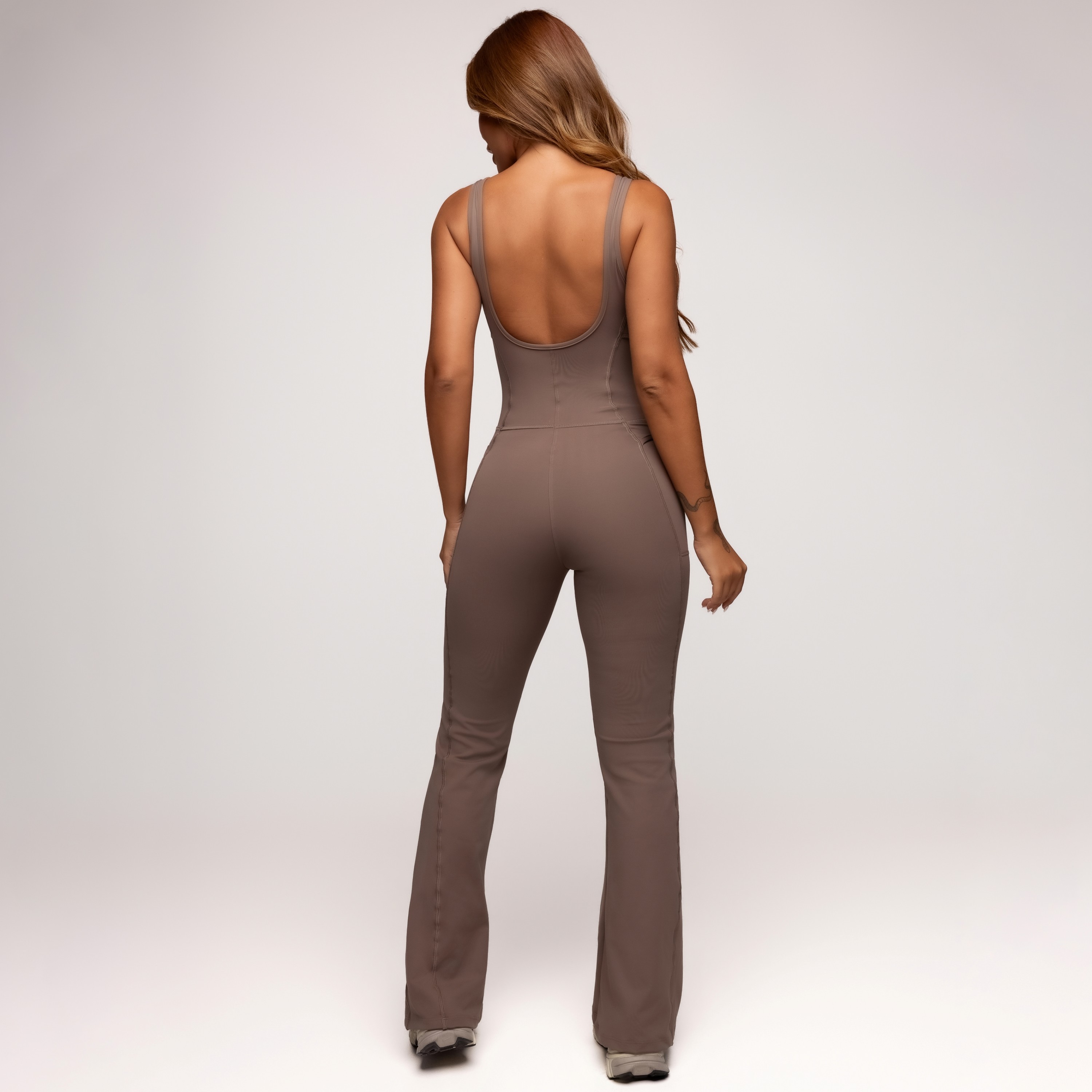 Macacão Fitness Flare Poliamida com Bolsos Laterais Cinza