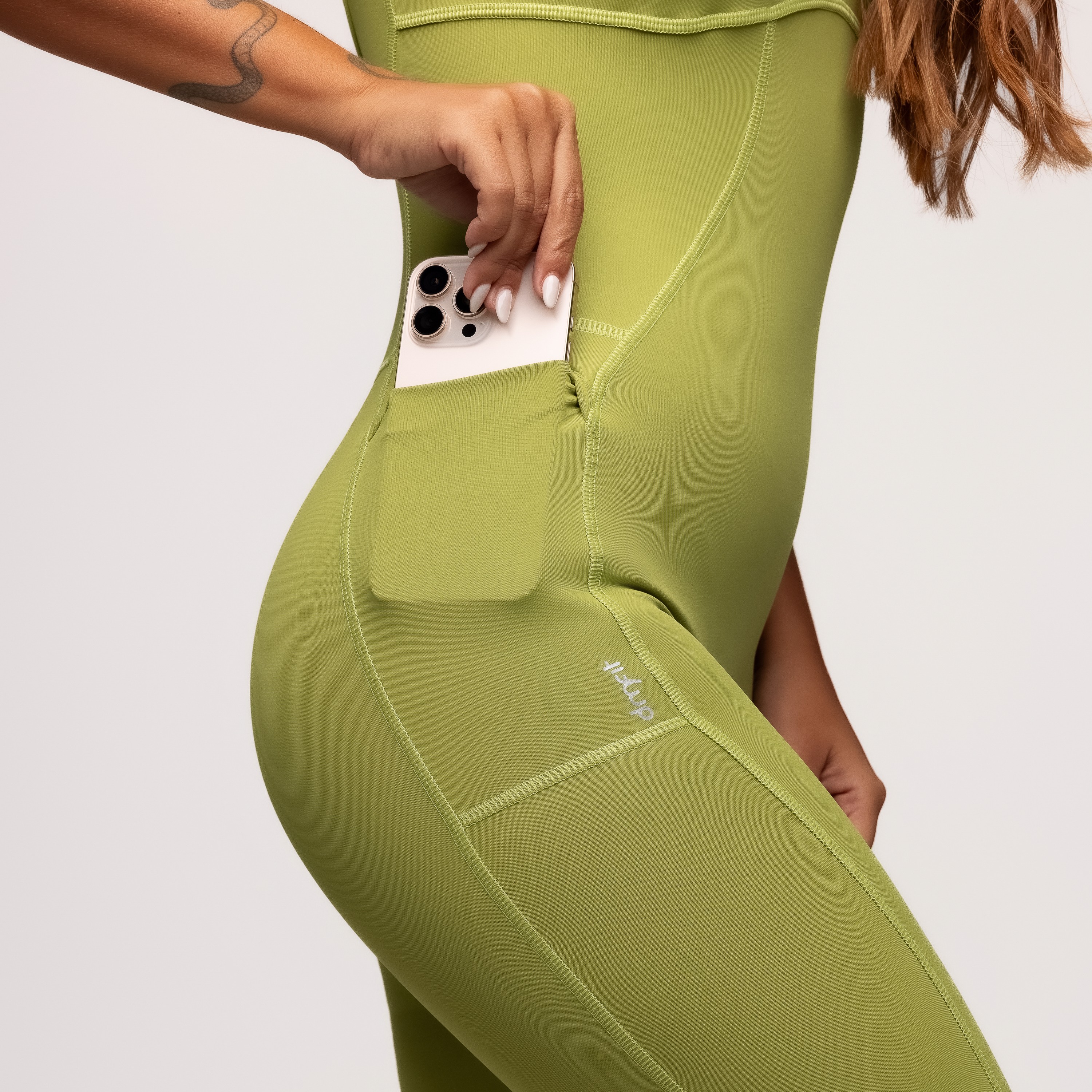 Macacão Fitness Flare Poliamida com Bolsos Laterais Castanho