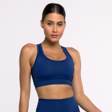 Top Fitness Sustentação com Abertura nas Costas Azul Marinho